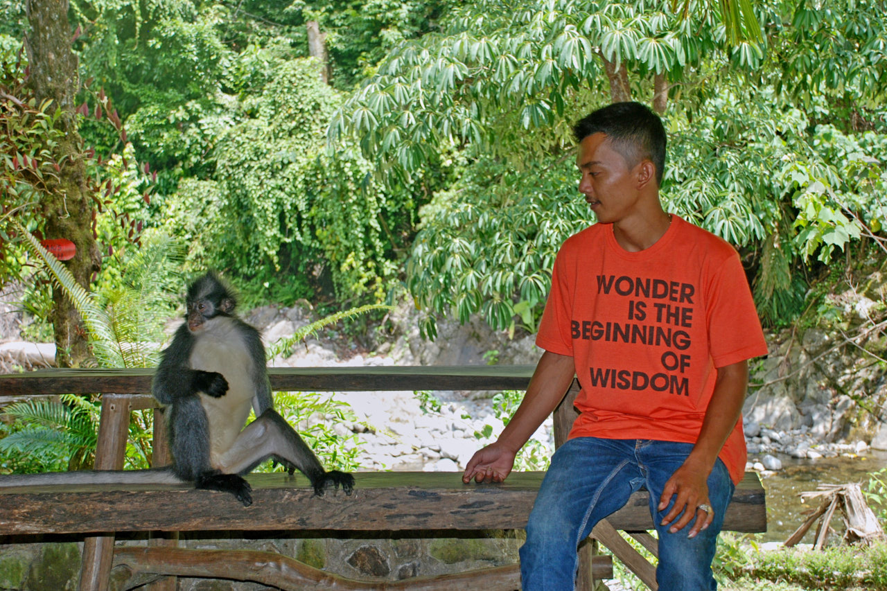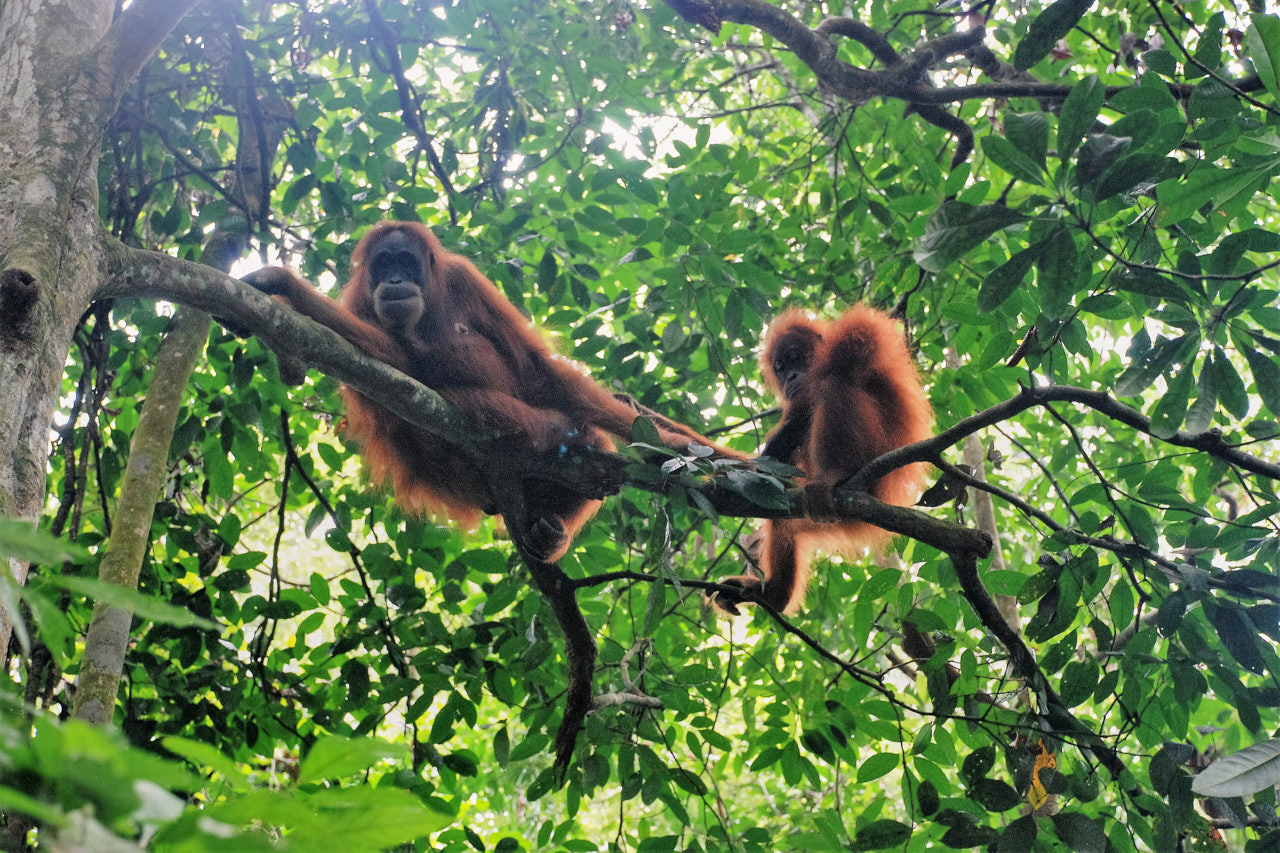 Orangutany są obłędne, trudno uwierzyć, że mamy z nimi aż 95% takich samych genów. Przez lata był tutaj prowadzony projekt dokarmiania zagrożonego gatunku, od kilku lat są już „na swoim” i dobrze im idzie. Z powodu dużej wspólnoty genów istnieje ogromne niebezpieczeństwo wszelkiego rodzaju infekcji w obie strony dlatego trzeba bardzo uważać, również dlatego, że bywają agresywne. Mój sprawdzony w wielu miejscach na świecie, w Amazonii czy na pustyniach, Nikon nie wytrzymuje warunków tutejszej dżungli i drugiego dnia odmawia współpracy. Ale dzięki temu mogę się bardziej koncentrować na tym, co mnie otacza.